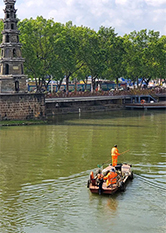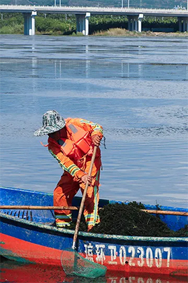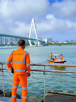 河域保潔面積9.72平方千米,年處理垃圾量6269噸(福建5300噸),打撈次數(shù)47170次,船只配備36次,人員168人。